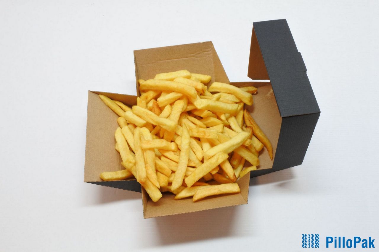 Voor het verpakken van snacks is ons lichtgewicht golfpapier een geschikt materiaal. Door het toepassen van een speciale vetwerende papiersoort, blijft de verpakking in goede conditie. Het is zelfs mogelijk om de snack te verwarmen in de oven, omdat wij materialen kunnen inzetten die tot wel 220°C verhit kunnen worden in de oven. De karakteristieke golf van ons materiaal zorgt er tot slot voor dat warmte wordt vastgehouden en de snack langer warm blijft. Dit maakt ons lichtgewicht golfpapier een perfect materiaal voor take-away verpakkingen.